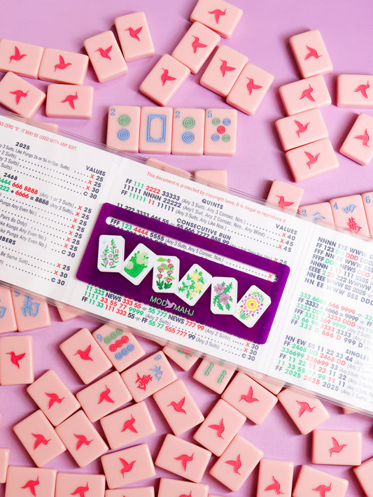 Don't forget to add a pop of color with your mat and tablecloth and keep score in style with a Mod Mahj Score Pad. No detail is left undone.