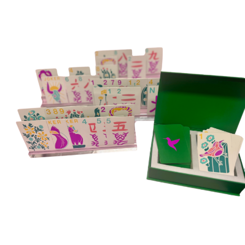 Bundle up and save with Desert Bloom American Mahjong Playing Cards! Pair them with the convenient Lucite card racks for an easier mahj-on-the-go experience. Cards and racks bundle, mahj-on-the-go made easy.